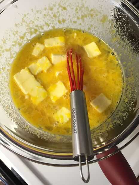 * Hay otras maneras para hacer cuajada pero el baño María ayuda a evitar que los huevos revueltos. Otra opción es colocar todos los ingredientes excepto los huevos en una salsa de pan y de calor, agregue un poco de líquido caliente a los huevos a los, luego viértalo todo de una vez en la cacerola y revolver hasta espesado.