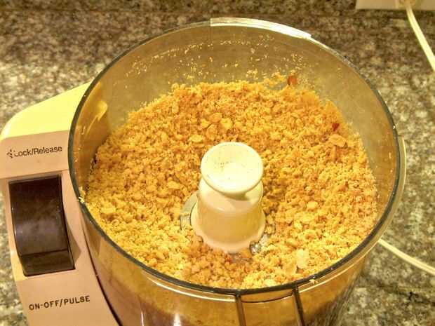 Después del primer minuto más o menos debe tener una tajada del curso. Si desea tener una mantequilla de cacahuete crujiente como el acabado del producto, usted querrá tomar 1/4 de taza de su áspero Granillo y guárdelo para agregar en el paso final.