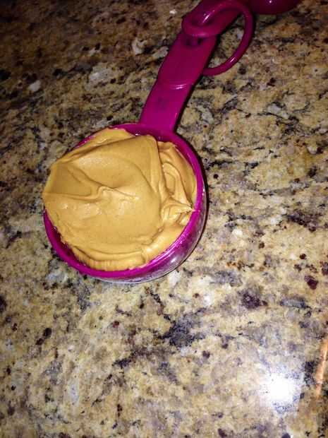 Mezclar una taza de mantequilla de cacahuete cremosa a la mezcla azúcar/jarabe de maíz caliente. Revuelva hasta que la mezcla esté cremosa y suave.