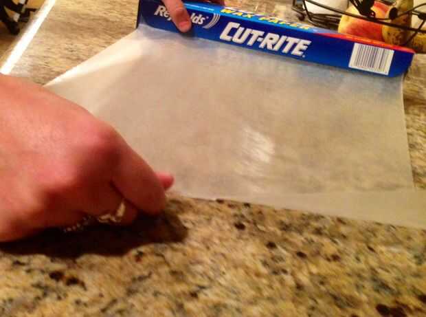 Preparar el papel encerado por arrancarlas una hoja y colocarla sobre una superficie superior del mostrador. Spray aerosol de cocina antiadherente en sus manos, esto hace más fácil trabajar con la mezcla.