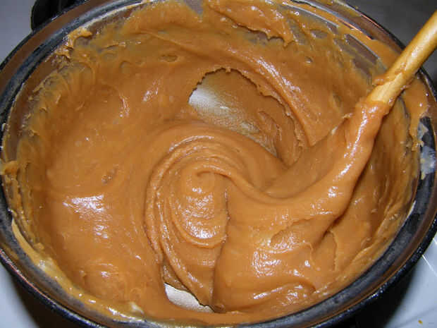 Retirar del fuego. Agregue malvaviscos, mantequilla de maní y vainilla. Agitar vigorosamente durante 1 minuto, hasta que los malvaviscos se funden y mezclan.