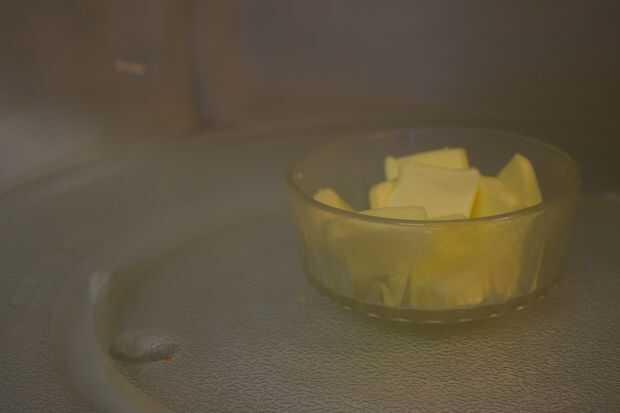 1 para el relleno, primero derrita la mantequilla en el microondas. Me tomó unos 30 segundos para derretir la mantequilla.