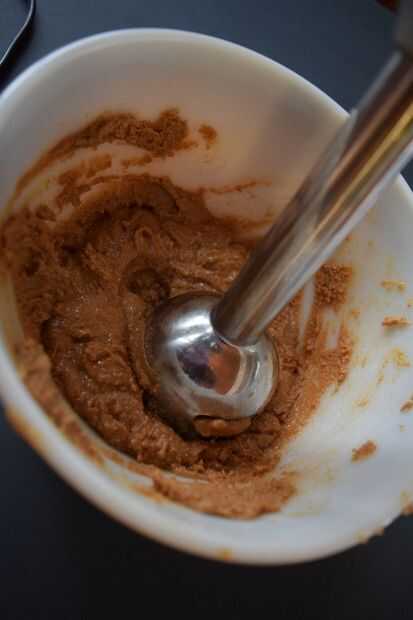 Para tener ese grano en el relleno, mezclar el relleno con su licuadora de inmersión. Si no tienes uno de estos, el relleno se puede Agregar a un procesador de alimentos para suavizar la mezcla. Cuando el relleno es brillante y aterciopelado, la mezcla se hace!