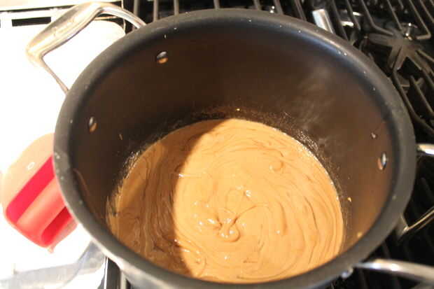 Mida mantequilla de maní, mezclar con Karo y azúcar hasta cremoso y agradable!