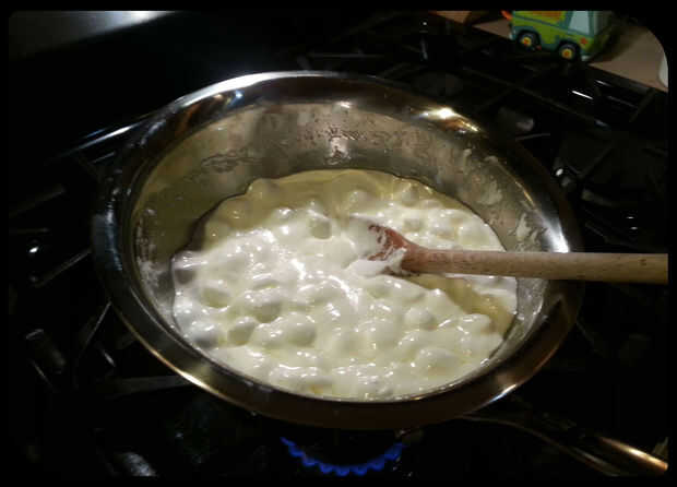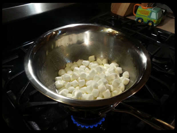 Agregar un puñado más o menos de malvaviscos en un tiempo, derretir revolviendo en la mantequilla. Asegúrese de revolver un poco, o usted conseguirá un pegote de malvavisco flotando sobre una piscina de mantequilla. Si las melcochas comienzan a quemarse, el calor aún es demasiado alto.
