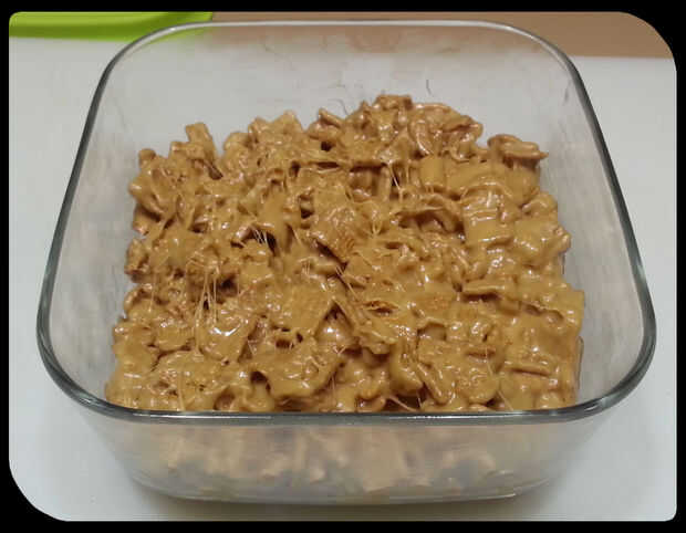 Presione la mezcla uniformemente en el plato con mantequilla, coloque la tapa en la parte superior y refrigere por 45 minutos a una hora de corte en barras o cubos y disfrutar!