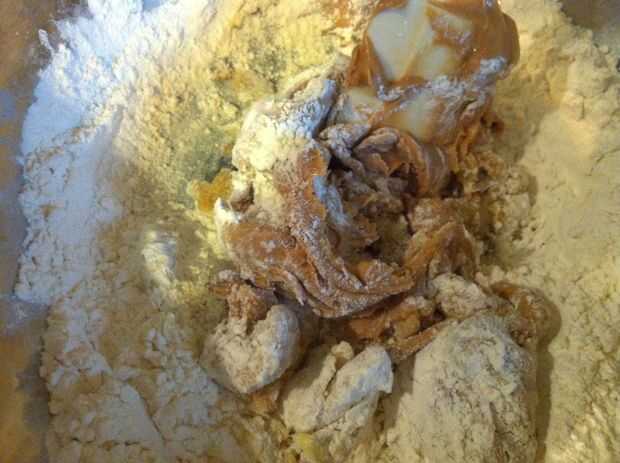 Ahora tienes una masa de mantequilla maní feliz. Palillo a chico malo en la nevera un poco, quizás media hora o así.