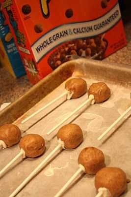 Si haciendo tontos, sumergir cada stick en un poco de blanco derretido candy melts y empuje en cada bola de mantequilla de maní. Poner en nevera durante unos 5 minutos para endurecerse. (Tip: poner el papel encerado en una bandeja para hornear galletas, entonces es fácil transferir sus delicias desde la nevera!)