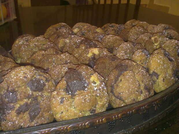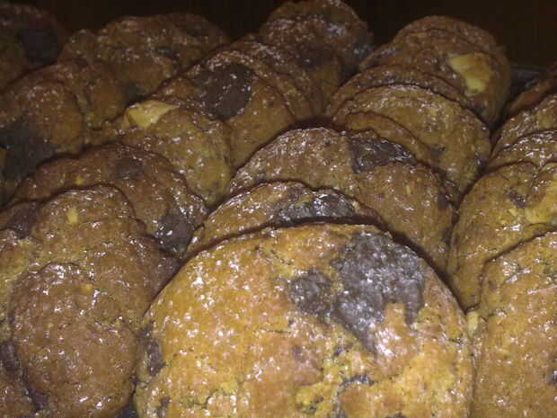 Colocar la masa por cucharadas, 1 pulgada aparte en dos hojas de hornada grandes de amontonamiento. Hornear hasta que de oro, 13 a 15 minutos, girando a la mitad de las hojas. Transferencia de cookies para alambre bastidores para enfriar.