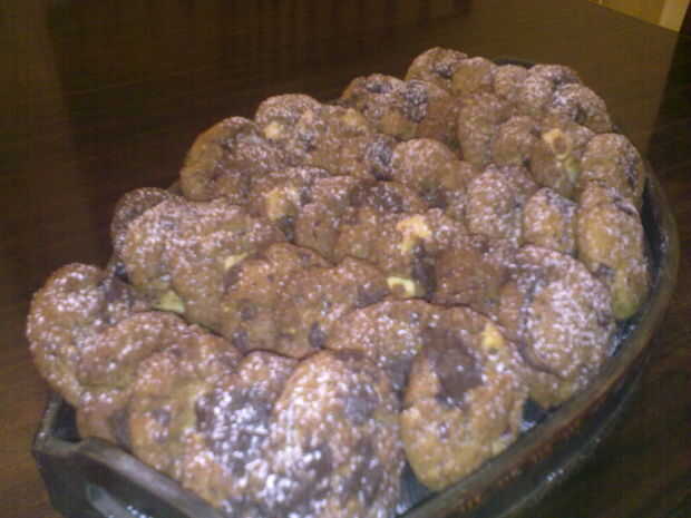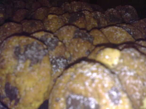 PRECALIENTA el horno a 350 grados. En un tazón, batir harina y bicarbonato de sodio; dejar de lado. En un recipiente grande, usando una batidora eléctrica, batir mantequilla de maní, la mantequilla y el azúcar hasta ligero y mullido. Agregue los huevos y la vainilla y batir hasta que quede suave. Con una batidora en baja, añadiendo la mezcla de harina, batiendo sólo hasta que el combinado. Añada los trozos de chocolate.
