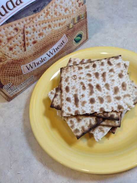 Aplique una capa delgada de mantequilla de maní en la matzá. No hacer demasiado gruesa, o bien puede mezclar con el chocolate más tarde.