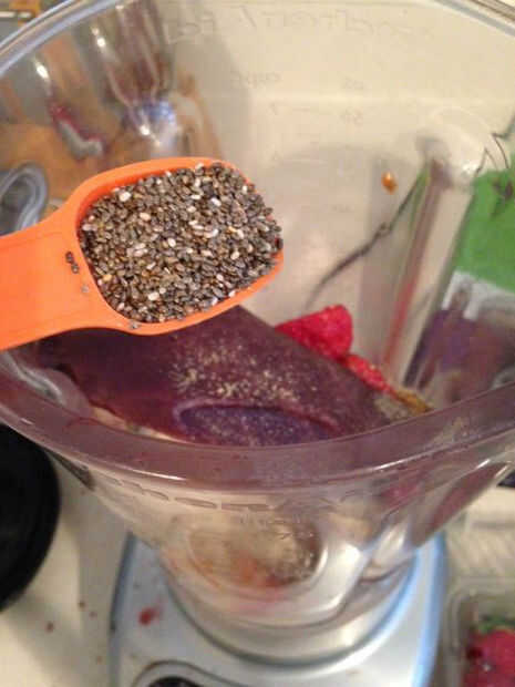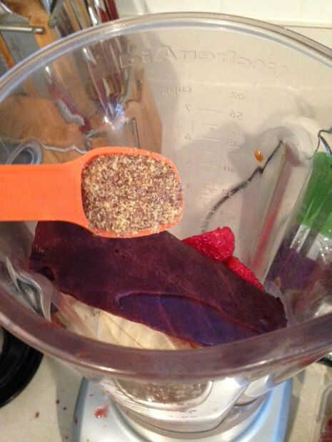 Añadir el Acai (o arándanos). Luego añadir fresas, semillas y mezcla!