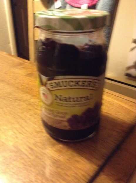 sé que esto suena realmente extraño, pero es realmente sabroso!En una licuadora, licúa hasta que quede suave:1/2 cucharada mantequilla de maní natural todos (la clase hecha con cacahuetes asados solamente)jalea de uva 1 cucharada3/4 taza de leche1/4