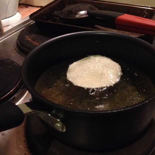 Utilice su masa de gyoza "sacrificio" para poner a prueba para ver si el aceite está suficientemente caliente para freír... digo "sacrificio" pero la masa frita sí mismo es bastante sabrosa.