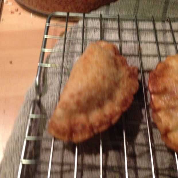 Puedes poner sobre un paño de cocina o una bandeja de enfriamiento con una toalla debajo para ayudar a eliminar algunos del exceso de aceite.