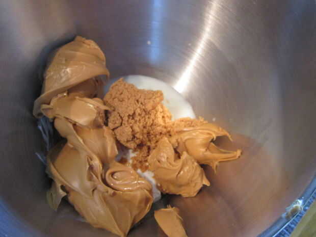 1. Añadir la leche, azúcar, crema de queso y mantequilla de maní a un tazón grande y mezclar hasta combinar.