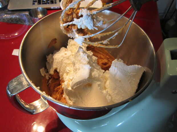 2. volcar en el Cool Whip y mezclar nuevamente hasta que se formen picos suaves, peanutty deliciosas. En este punto puedes probar la mezcla. Nunca se sabe, podría ser envenenado, por lo que tenía mejor comprobar.