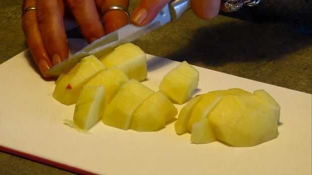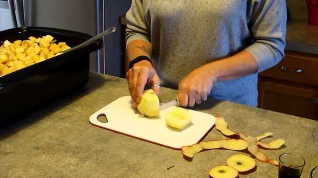 Pelar y picar las manzanas. Un trabajo terrible sabe, pero acaba de poner en algunas canciones, lo hará sin darte cuenta!
