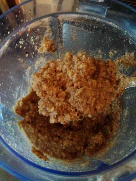 Una vez fríos, las tuercas se pueden poner en la licuadora. Añadir aproximadamente 1 1/2 cucharadas de aceite y 1 cucharada medida de miel.