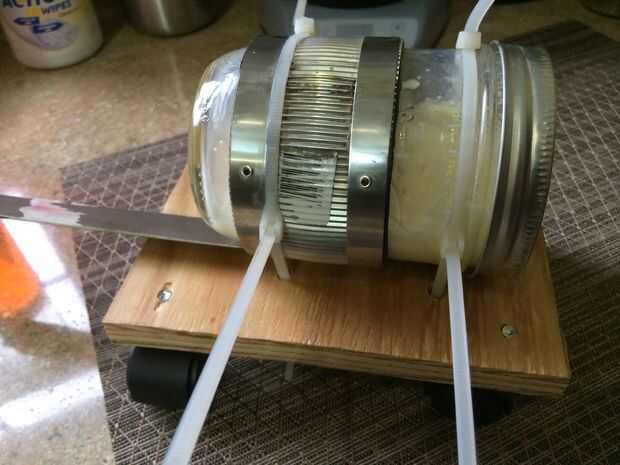 Después de dos minutos se terminó mi mantequilla. Usted sabrá cuando ves el sólido forma en el vaso la mantequilla y se convierten en una masa. Generalmente corro mina unos 20 segundos más después de este punto. Dependiendo de lo cómodo usted está con su configuración y la velocidad se ejecuta. Pasa su tiempo de ejecución. Corrí mi velocidad de 1/4 con una velocidad de 1/2 estallan aquí y allá!