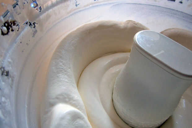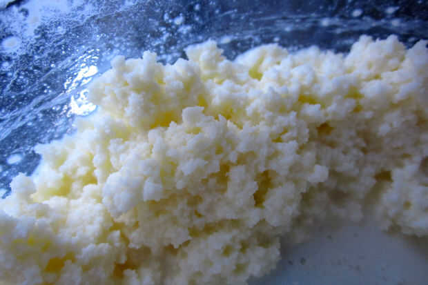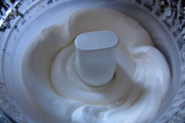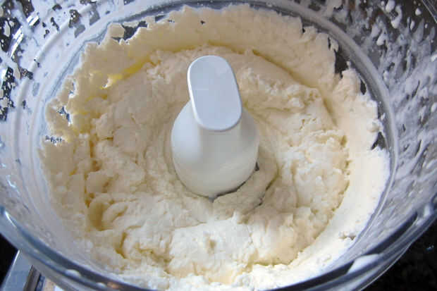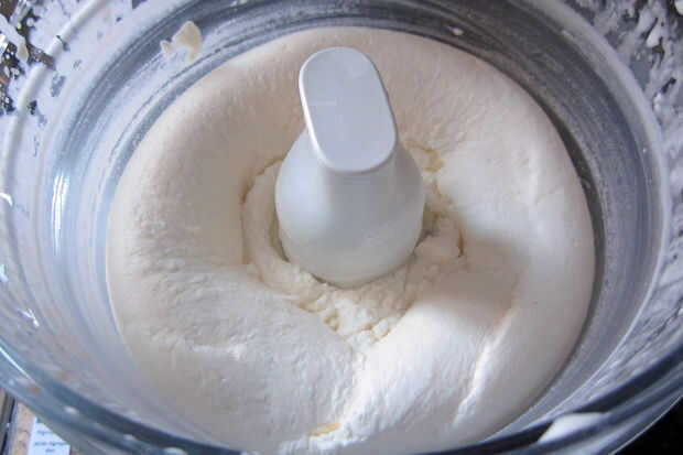 La crema se espese y luego espese más y eventualmente se rompa. Esto sucede cuando se rompen los vínculos entre la grasa y el líquido y se separan uno del otro. Una vez que lo hace, y pronto habrá un montón de líquido chapotear alrededor de allí, a escuchar una fuerte diferencia en el sonido de los azotes. Tan pronto como usted oír/ver romper, apagar la máquina - mezclar este líquido nuevamente dentro de la mantequilla reducirá su vida útil. Todo el proceso debe tomar aproximadamente 4-7 minutos, dependiendo de la beefiness de su procesador de alimentos.