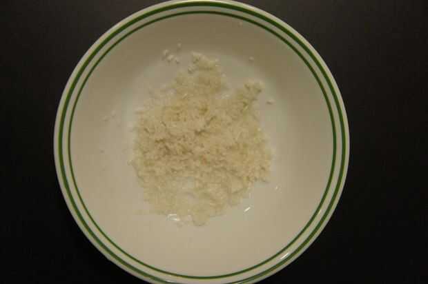 5) escurrir el arroz empapado y triturar lo más posible usando la mano