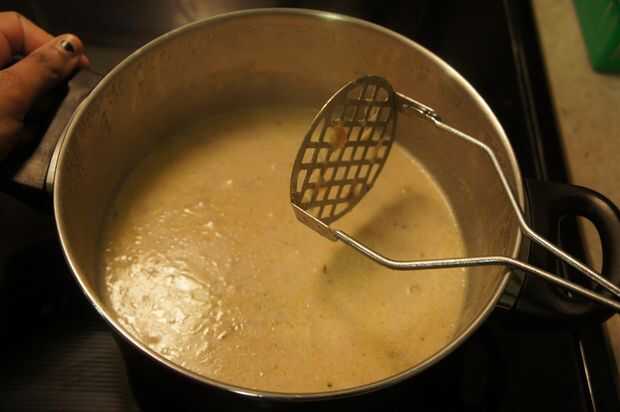 11) utilizando una trituradora de la patata puré para arriba para que quede una textura uniforme