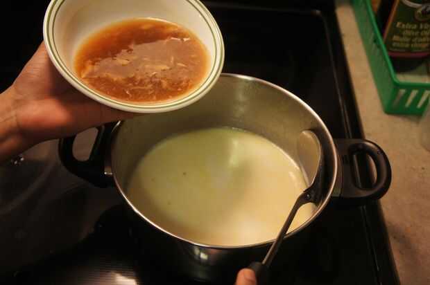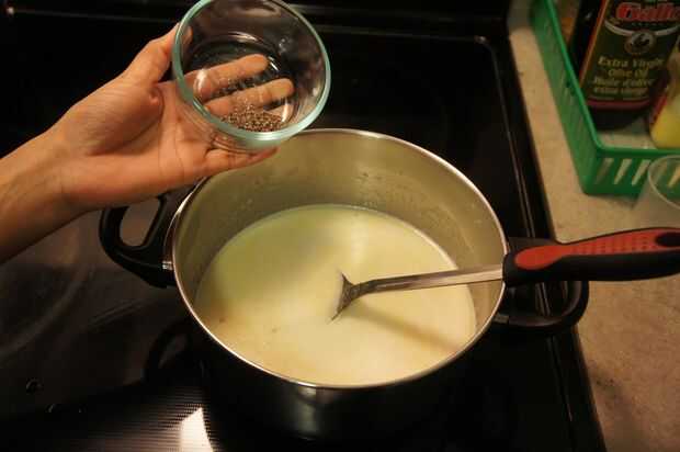 7) luego agregar la leche a la sartén y ponerlo a fuego bajo y cocinar hasta que el arroz esté completamente cocido con agitación ocasional.