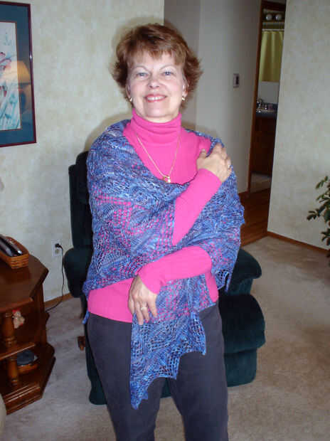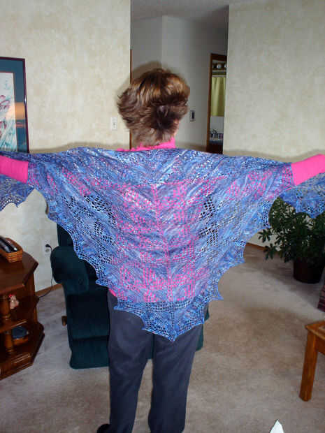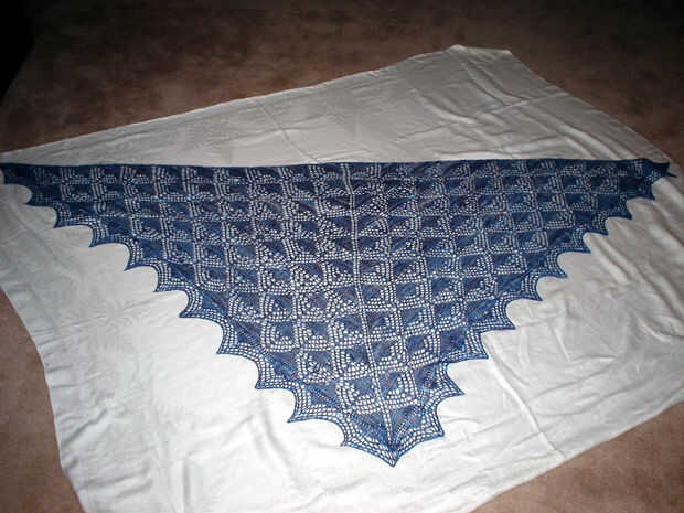 20 de febrero - después de haber terminado mi afgano, estoy haciendo un chal de oración, http://www.shawlministry.com/ para el papá de mi amiga Cathy. Cayó y se rompió y había desplazado seis costillas la semana pasada cuando estaba en la bolera. No