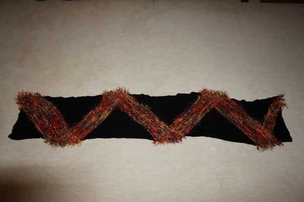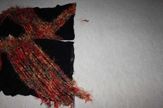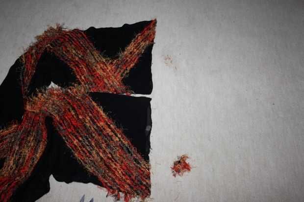Coloqué los dos extremos del chal plana y cortar los lazos en los extremos.