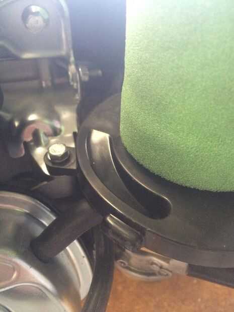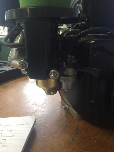 Para este paso necesita las tomas 1/2 pulgada y 10 mm con la carraca de coche pulgadas anillado. Quitar los tornillos será el mismo como la forma en que les quitó en el último paso. La toma de ½ se utilizará para los dos pernos en la parte delantera mientras que el 10 mm se utiliza para el perno en la parte posterior. Una vez que haya quitado los tornillos, ponerlos en otra bolsa Ziploc o en la misma bolsa Ziploc que utiliza para la tapa del carburador. Usted tendrá 2 tuercas gris y un perno gris con una arandela (poco gris metal círculo.)