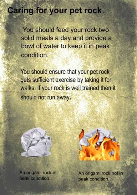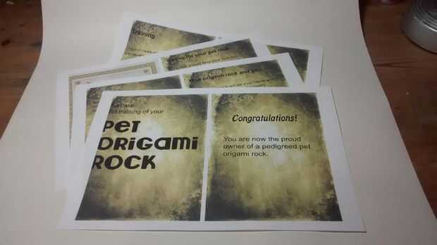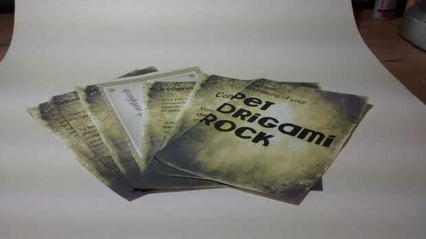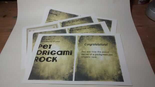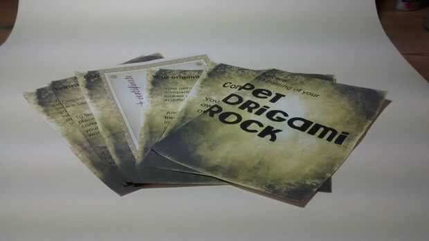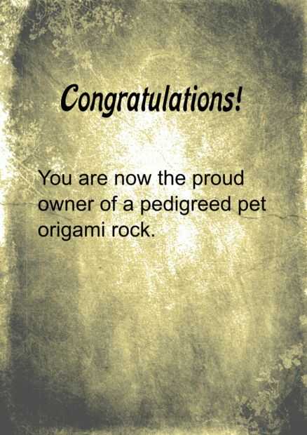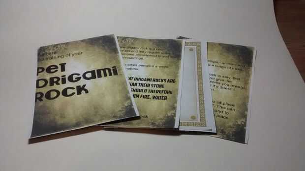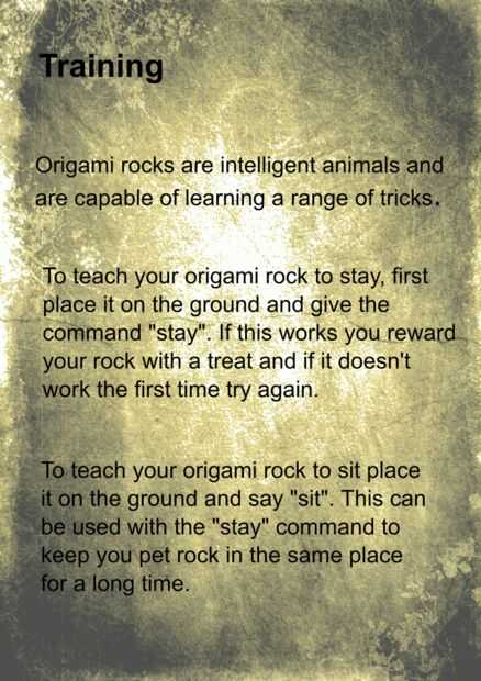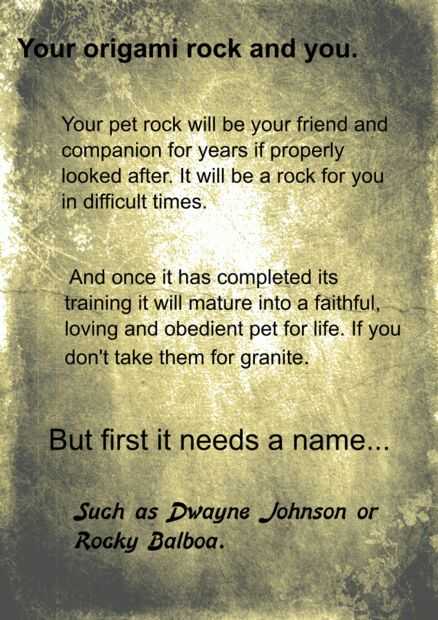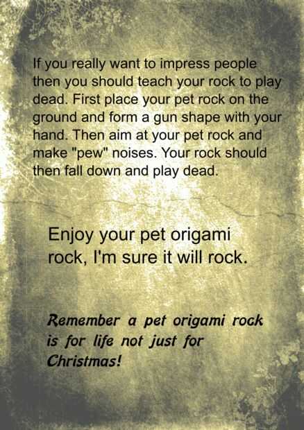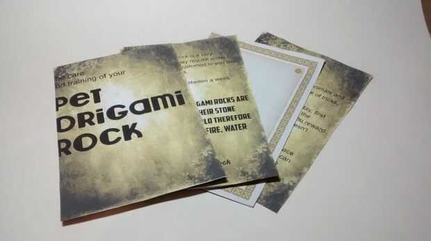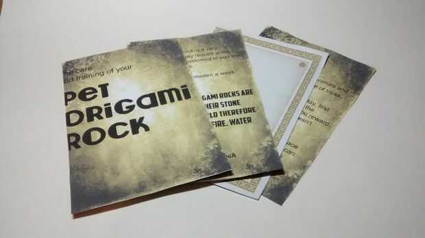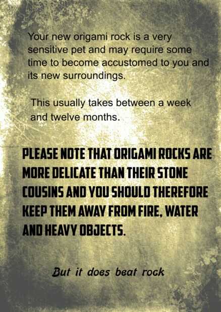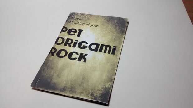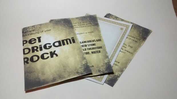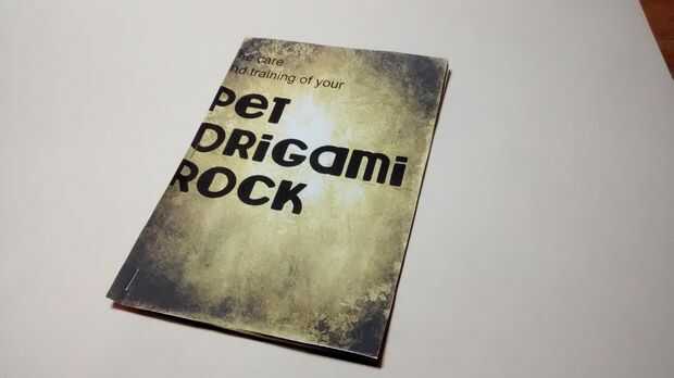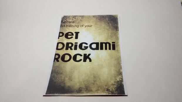 La roca del animal doméstico de origami no está completa sin su manual de instrucciones.