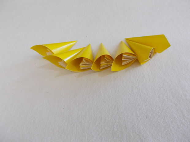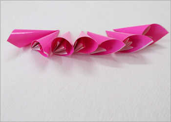 Hacer pétalos utilizando los papeles coloreados de la siguiente manera: