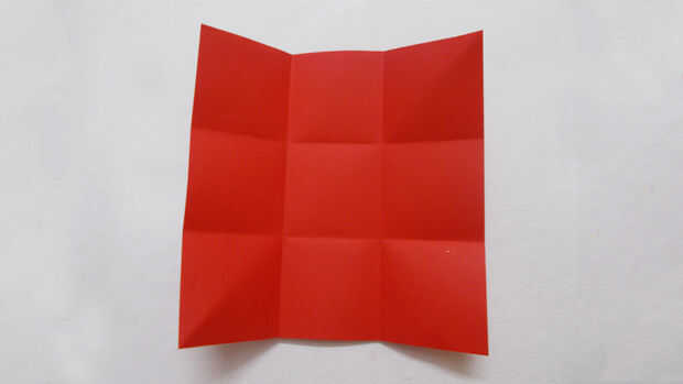 Cortar un cuadrado y doblarlo para dividir en 3 columnas iguales.