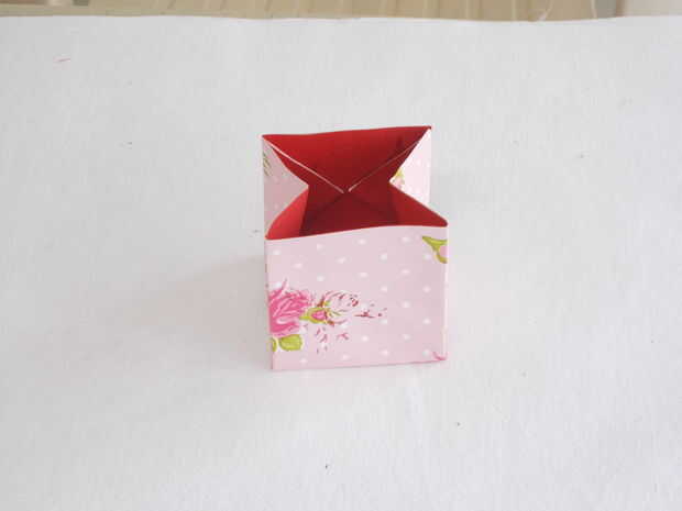 Doblar los papeles pegados otra vez para hacer el bolso,