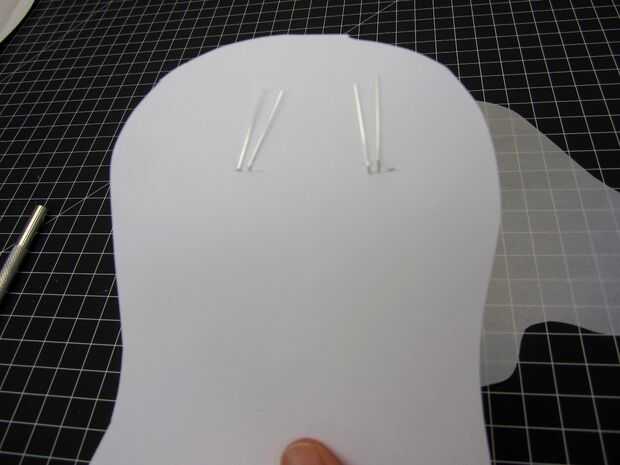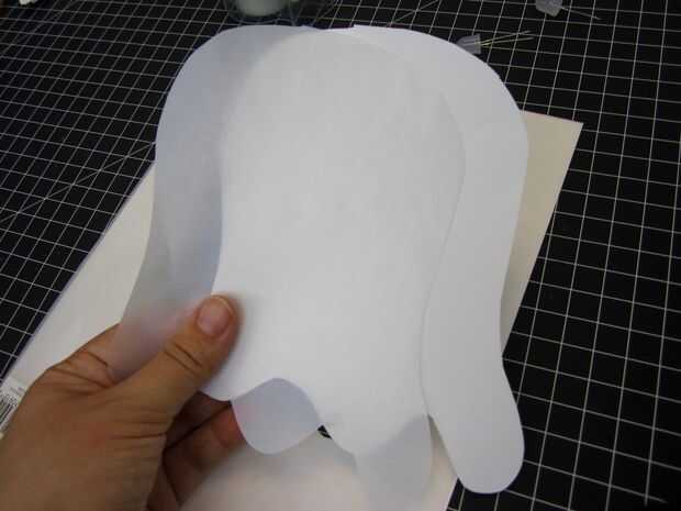 Únalos con cinta adhesiva el papel de construcción blanco y translúcido vitela. Luego cortar la forma de fantasma de dos pedazos de papel al mismo tiempo.