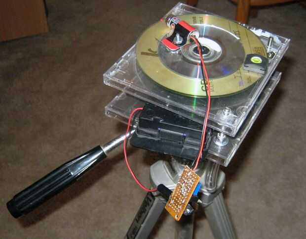 Así que decidí hacer una base ajustable con una plataforma giratoria. Tenía un viejo reproductor de CD y un montón de cajas de CD hackear hasta.