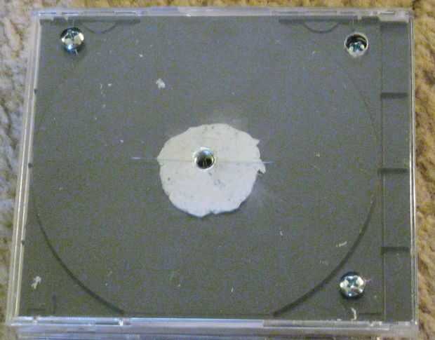 Use una broca, cuidadosamente perforar un agujero en el centro de las pestañas de la CD.