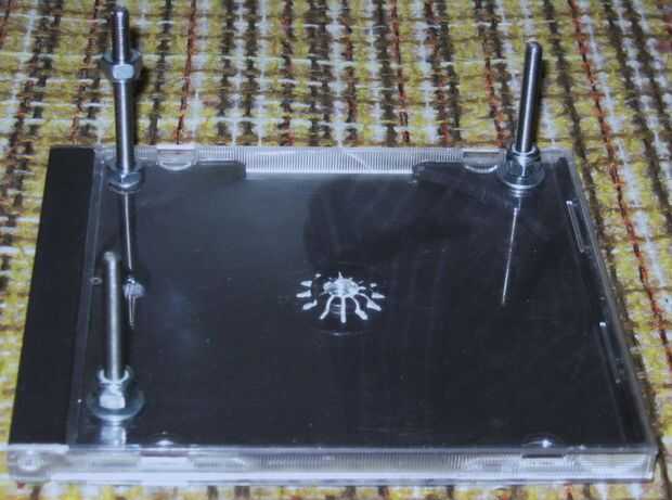 Diseño: Me decidí por un diseño de tres puntos. La caja del CD base se une al trípode. La caja superior del CD tiene un pivote fijo punto en una esquina (superior izquierda). El superior derecho e inferior izquierdo las esquinas son ajustables con tornillos a la caja superior del CD de nivel.