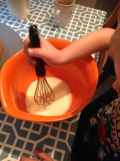 Mezclar el huevo, la leche y el aceite en un recipiente.