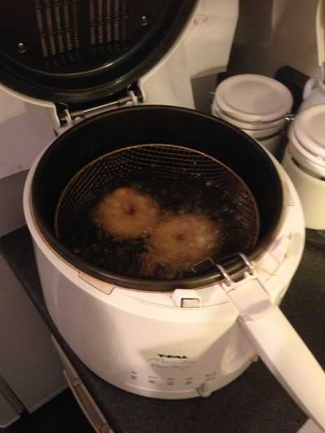 Deje caer las manzanas maltratadas en la freidora durante unos 3 minutos o hasta marrón y crujiente.