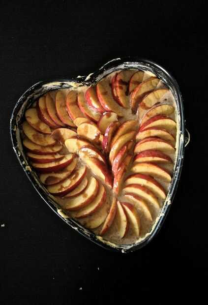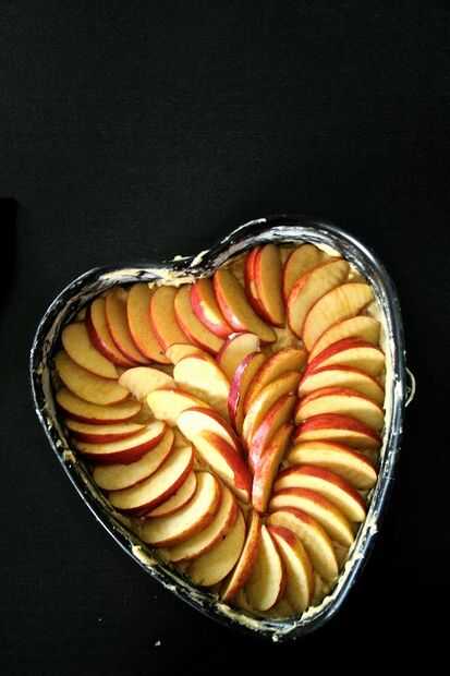 Ahora tienes que hacer nada más que poner la tarta en una bandeja de horno y ponerlo en el horno precalentado. Tenga cuidado de ponerlo en un nivel inferior, porque entonces, la masa estará lista antes de que las manzanas todo queme ;)