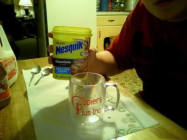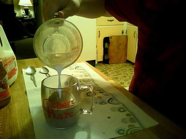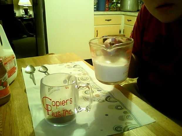 En este paso serás (A. Vierta el Chocolate Nesquik/caliente de la mezcla en una taza y (B. mezcla la leche con la leche chocolatada Nesquik/caliente.