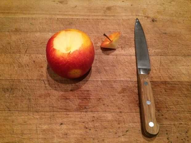 Comience con una manzana y cortar la parte superior planas conus y guardarlo para más tarde.
