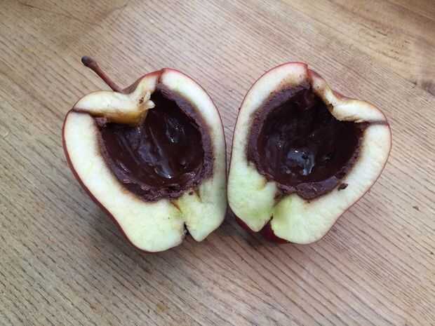 Con la manzana chocolate tus hijos obtendrá vitaminas (principalmente las vitaminas B de yema de huevo, C de apple), minerales (zinc, magnesio de chocolate) y buen chocolate fresco proteines (de yema) con bajo nivel de azúcar. La preparación toma sólo 5 minutos y por supuesto puedes añadir tu historia que los científicos finalmente encontraron una forma de crecer dentro de las manzanas chocolate :-)