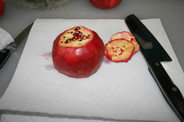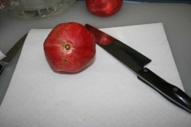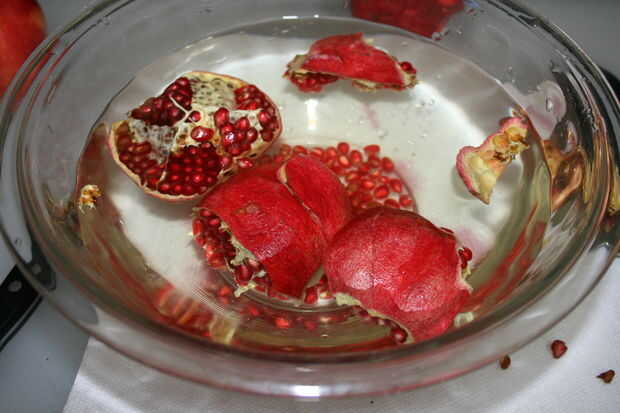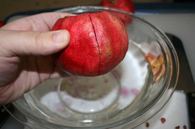 Poner la Granada en el agua y romper para arriba a lo largo de las puntuaciones.