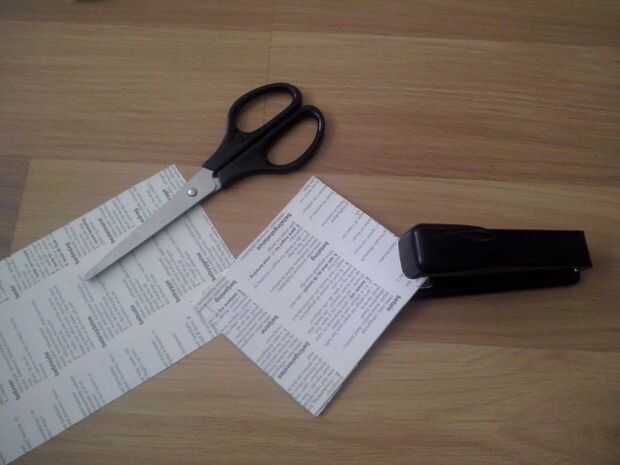 3. cortar un contorno áspero de la manzana en 5 páginas (depende de cómo "gruesa" que desea su manzana para ser) y las esquinas de la grapa. No se olvide de la grapa en el contorno de la manzana.