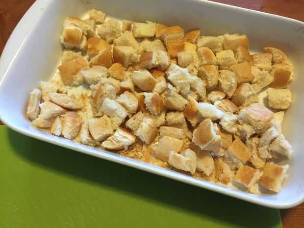 Una vez frío, colocar en un tazón grande. Puede sub 3 tazas de preparado mezcla de relleno seco (añadiendo el bacon) pero me gustaría hacer mi propio.