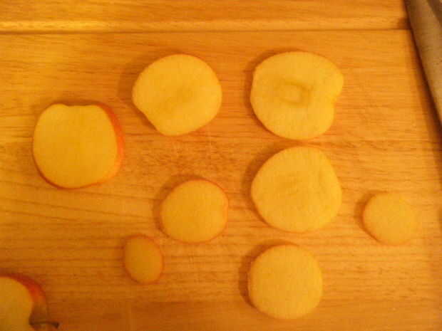 -Cortar una manzana por el lado en rebanadas delgadas (un poco más de un cuarto de pulgada).