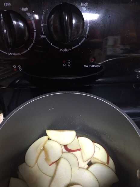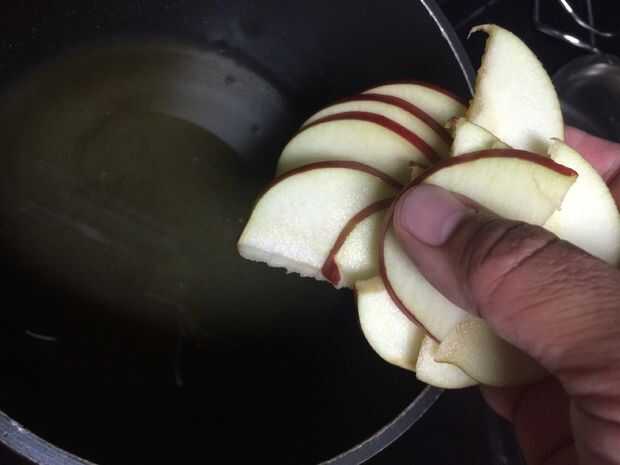 cocinar a fuego medio durante unos 3-5 minutos o hasta que las rodajas de manzana suave y flexible.
